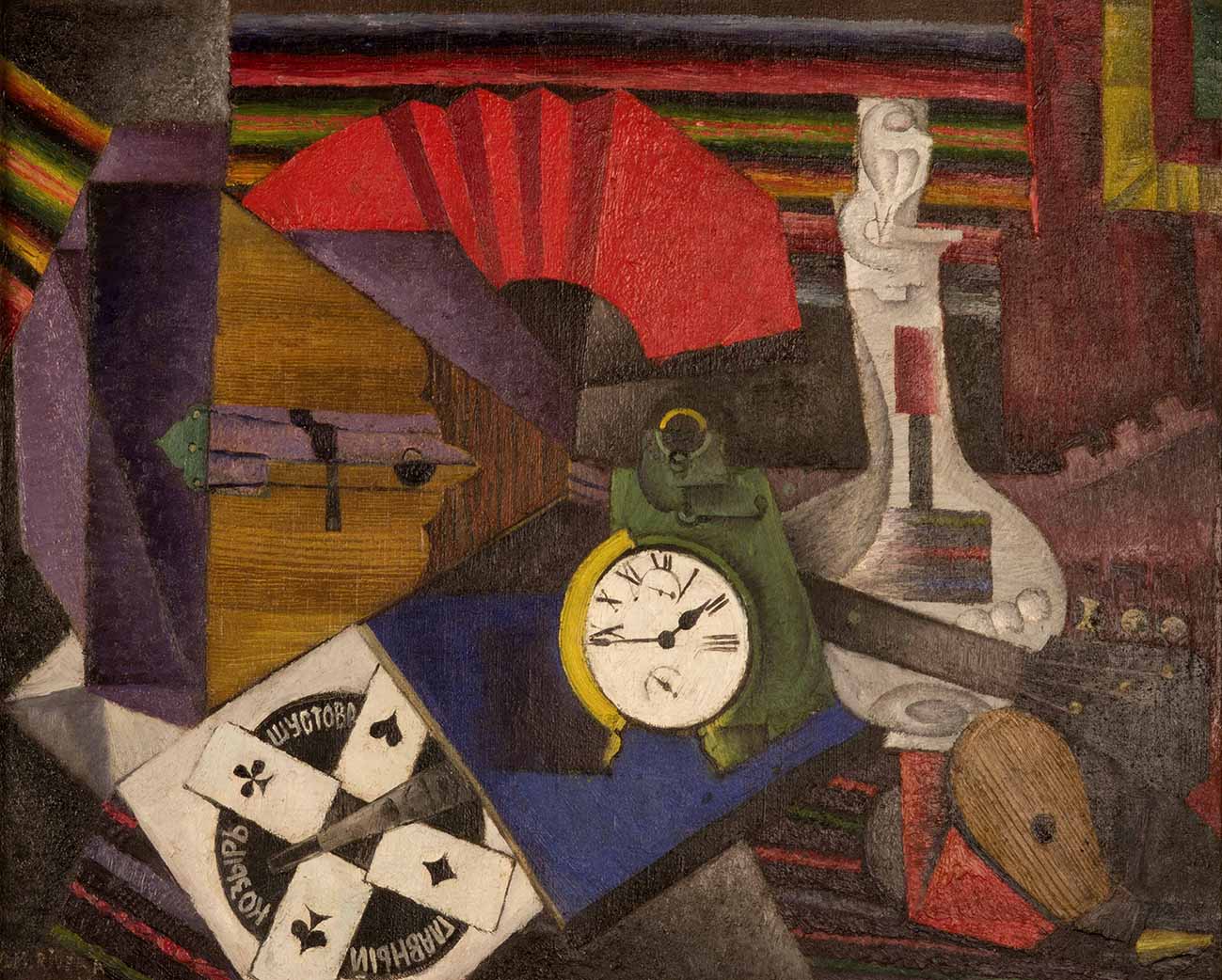Canvas by Diego Rivera, The Alarm Clock, oil on canvas from his Cubist period, 1914